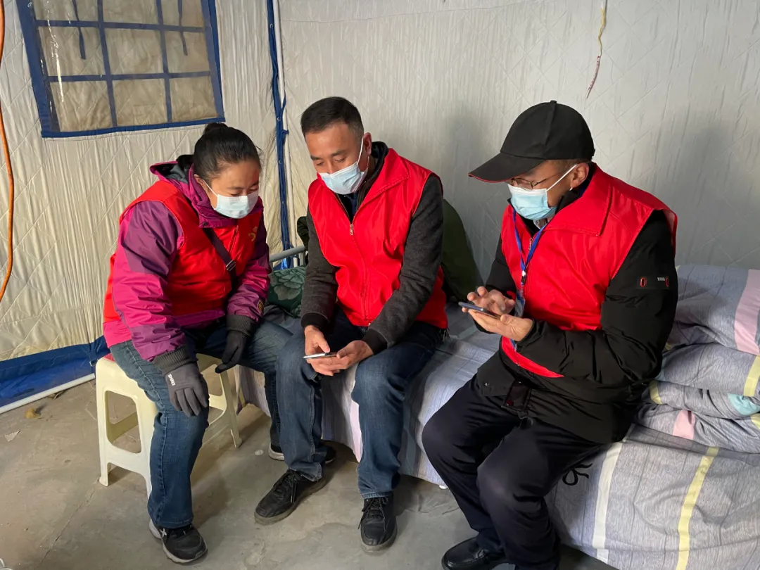 11月14日早晨7:30,在利通区金星镇金花园小区B区的执勤点上, 看到离执勤时间还有段空闲,吴忠市住房公积金管理中心党员王辉和郝晓文便在执勤帐篷里打开学习强国,学习党的十九届六中全会精神。