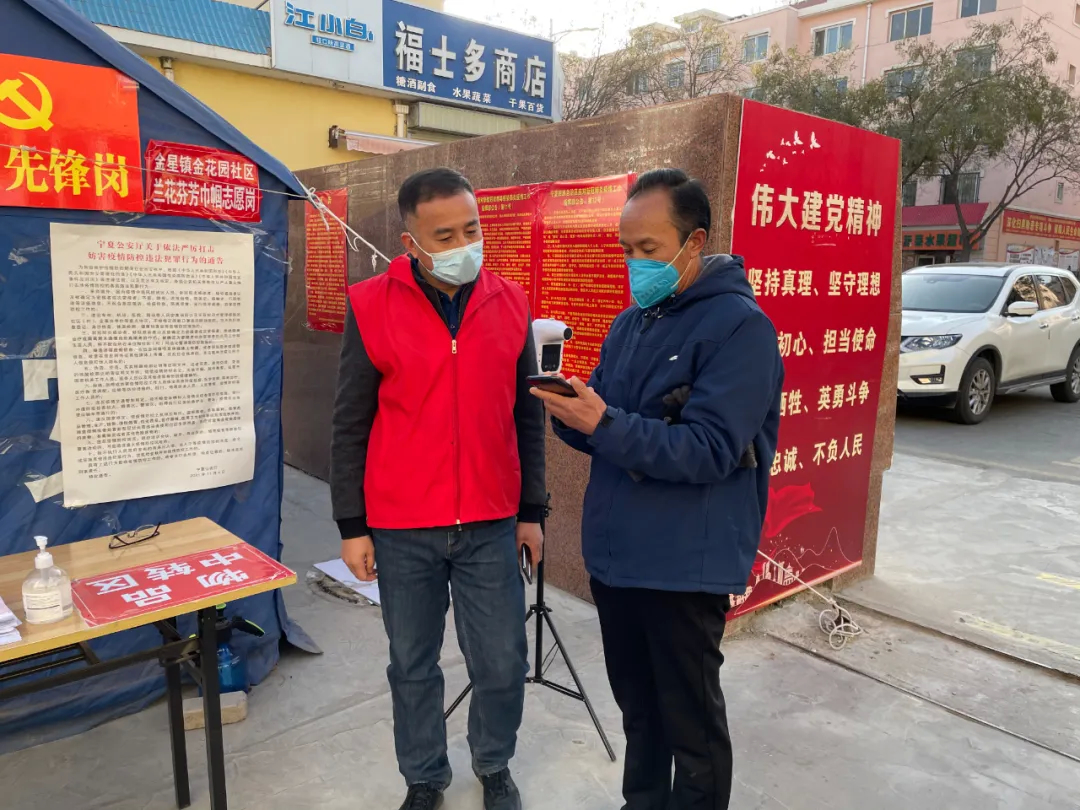 早晨9:00,吴忠市委网信办副主任孙雪松在吴忠张宝宁康复医院执勤点上开展疫情防控工作,对每位进入值守区域的人员都要测体温、验码,做到不漏一人、不放一车。